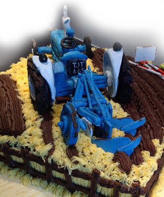 To celebrate this, I set myself the challenge to create my hubby's Fordson Super Dexta and plough in sugar paste as the centre-piece of his birthday day (45, bless him!). It had me up late but I loved every minute of it...I used the